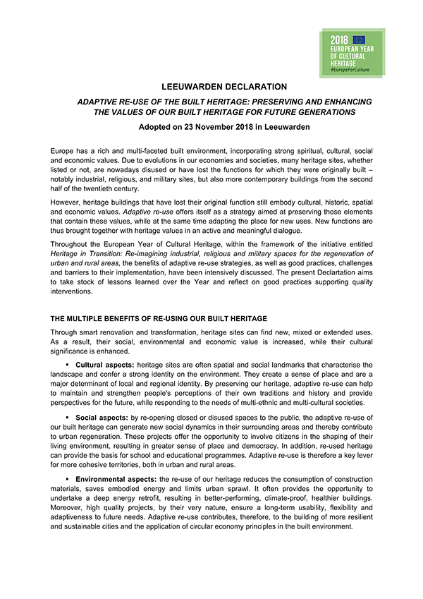 RE ADAPTATIVO – UTILIZAÇÃO DO PATRIMÓNIO CONSTRUÍDO – CONSERVAÇÃO E REFORÇO DOS VALORES DO NOSSO PATRIMÓNIO CONSTRUÍDO PARA AS GERAÇÕES FUTURAS